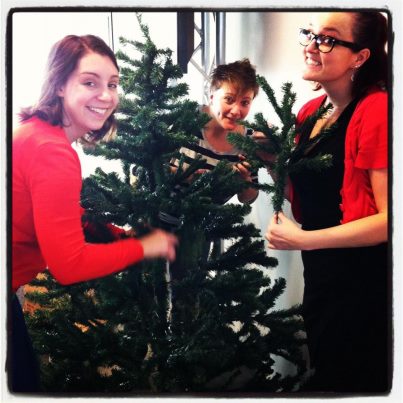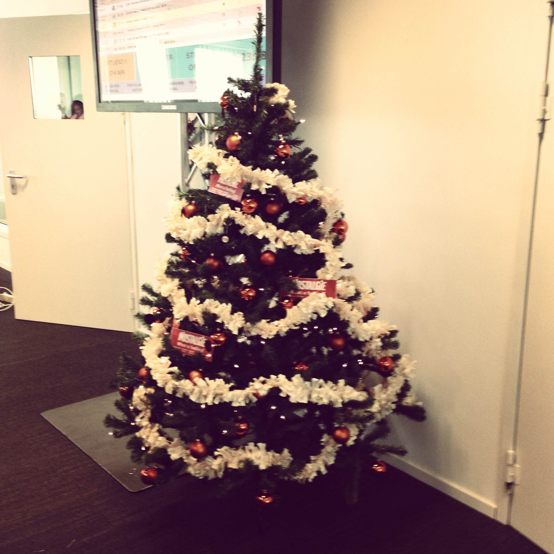 Ik denk erover na om misschien (ooit) toch te investeren in een mini-kunstmatige maar wel_heel_mooie kerstboom. Zo eentje die ergens veilig op een kast kan staan. En toch wat cadeautjes kan verdragen. Want allez, een kerstboom maakt me op zich wel heel gelukkig. Deze week heb ik samen met wat vrouwelijke collega’s de kerstboom mogen zetten op Nostalgie, dat was echt leuk. En het resultaat is ook echt de moeite.