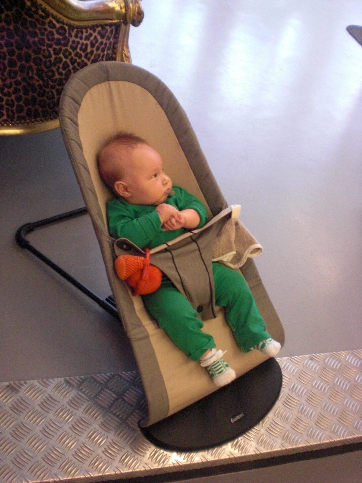 Hoe doen we dat praktisch? Want mijn kapper ligt midden in het centrum van Gent en ik weiger om dan met de auto te gaan. Ik heb dus gewoon Basiel in de fietskar geladen, samen met zijn wipper. Aan de borst gelegd vlak voor we vertrokken en hij was gelukkig. Meneertje heeft de hele tijd braaf in zijn wipper zitten rondkijken. (Die wipper is trouwens echt een topinvestering geweest, merci voor de tip!). En natuurlijk heeft hij ook de kapsters hun hart doen smelten, deuh.