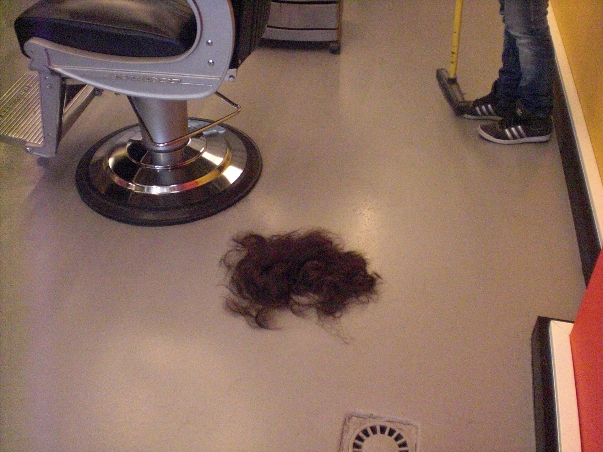 Ik heb gezegd dat het nog in een staartje moest kunnen en niet zo plat tegen mijn hoofd mocht liggen. Voor de rest mocht ze haar goesting door. Met wat ik daar heb achter gelaten, kan je gemakkelijk een pruik malen.