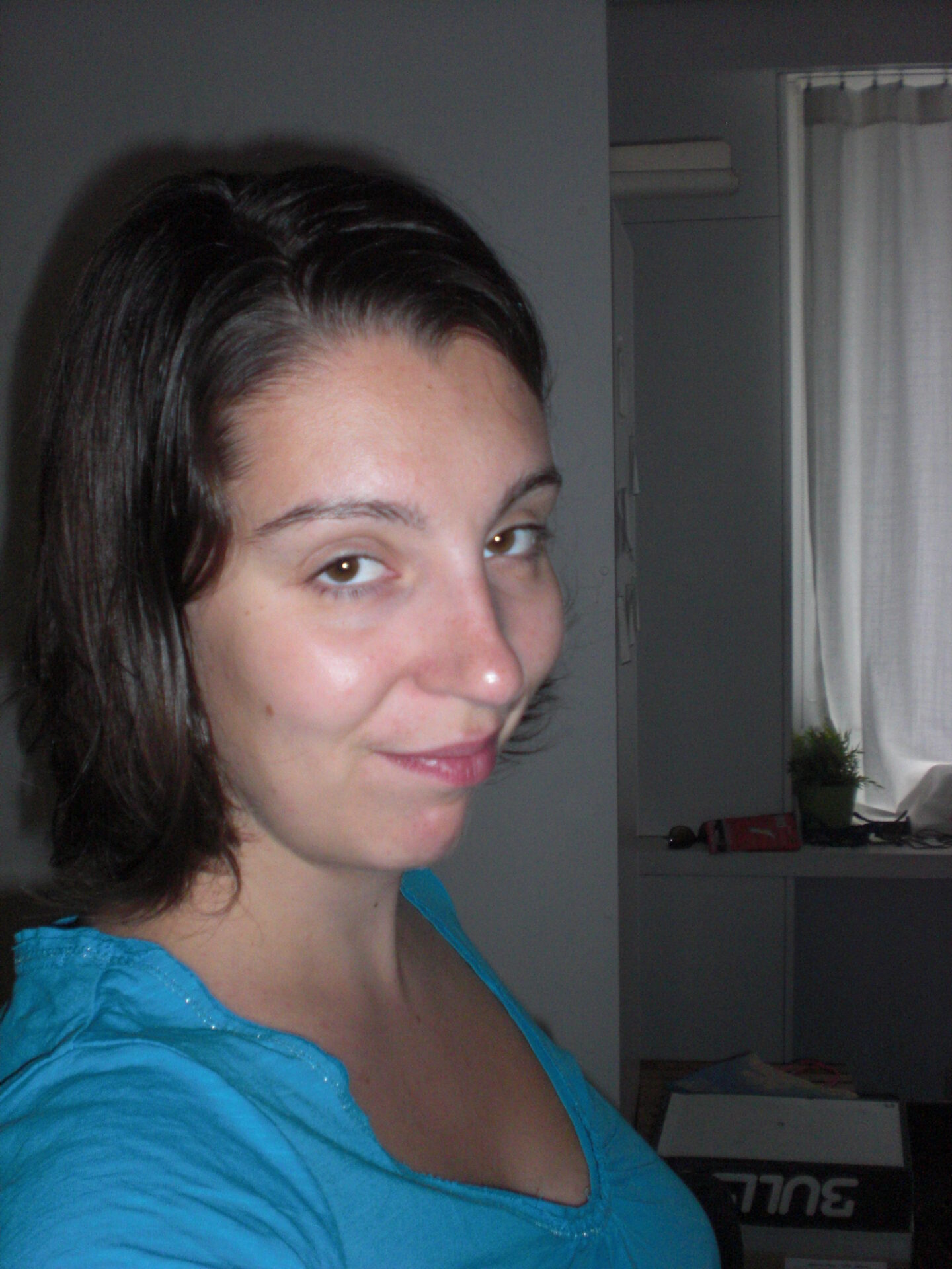 Mijn lief is trouwens ook geweest gisteren. Hij gaat wel naar een andere kapper, maar voor de rest is dat hier een frisgeknipt gezin. Ik ben niet zo bedreven in zelfportretten, dus het is wat mislukt. Maar toch al een impressie, omdat het anders nogal gemeen zou zijn om een kapperspost te schrijven zonder foto. Maar vergeef me de belachelijkr smoel en het ongestylede kapsel, ik kwam net uit de douche.Een staartje gaat trouwens niet meer zo vlot, altijd hetzelfde met die kappers e. Die hebben kort-drang.