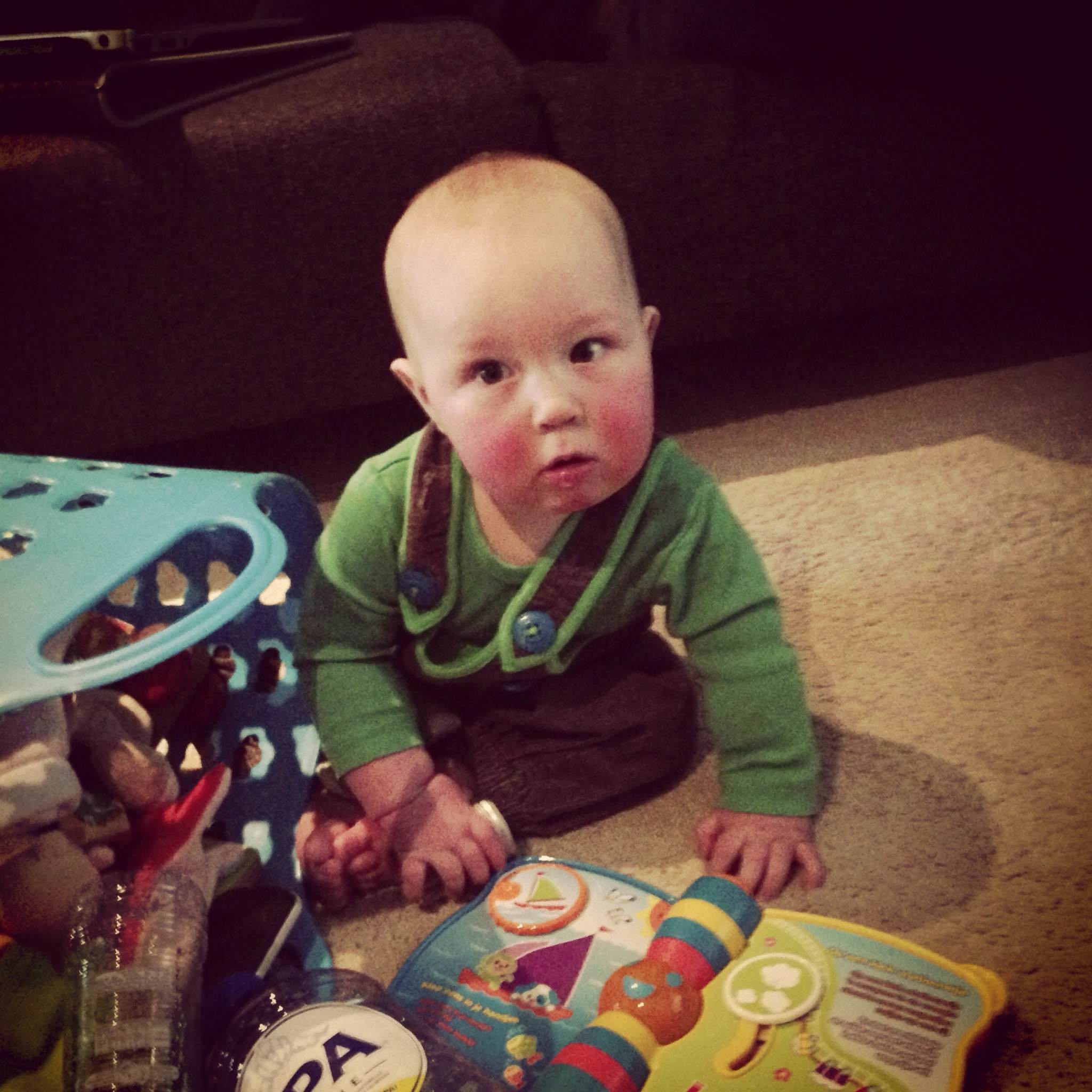 Op een avond had ik je gewoon neergezet op het tapijt en bedolven onder een berg speelgoed. Ik ging er van uit dat jij wel een tijdje zoet zou zijn met het in- en uitladen van de wasmand, het babbelen tegen een lege waterfles of het zoeken naar computerkabels. Ik kon rustig aan mijn eten beginnen.