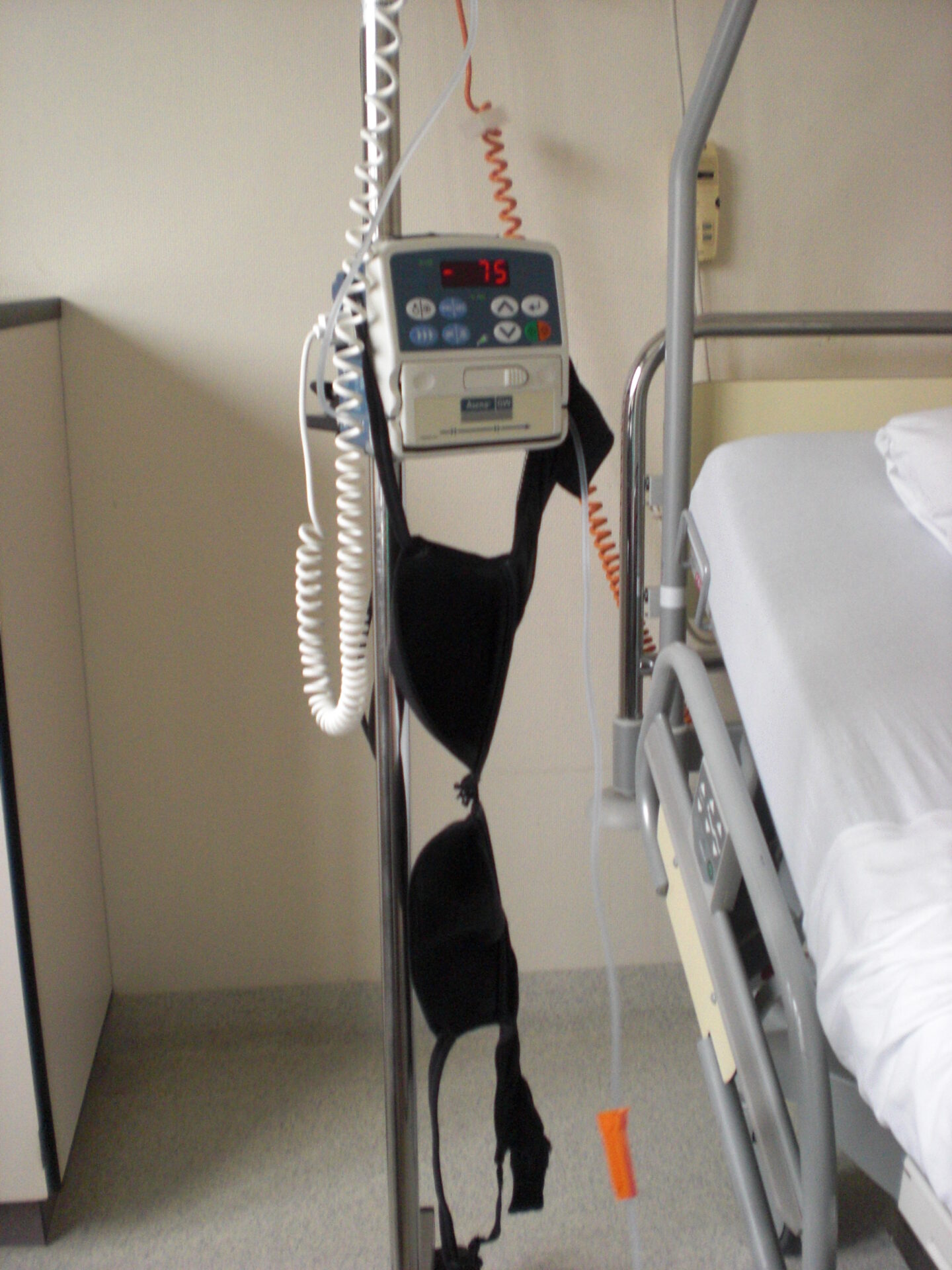 Omdat er uiteindelijk nog altijd niks gebeurde – had niemand verwacht, ik was op dat moment officieel raar – gingen we over tot de grote middelen. Uiteindelijk had dat ventje geen vruchtwater meer, dus hij moest eruit. Een baxter. De eerste baxter van mijn leven. Om dat ik pas daarna besliste om mijn beha uit te doen, werd het ding al snel versierd met lingerie. Want als ge aan zo’n spel hangt, krijgt ge u beha daar niet meer over. Heel grappig gezicht, toen vond ik het allemaal nog heel grappig. Toen wel ja. Timecheck: 13u. De boemeltrein is op dat moment al meer dan een dag onderweg.